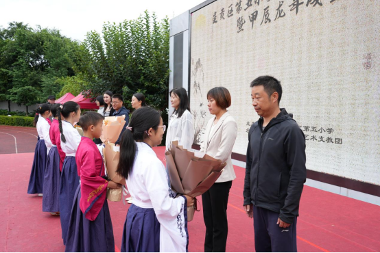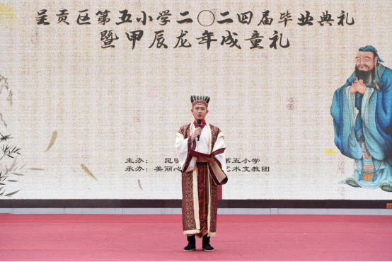 呈贡区第五小学董事长尹艳老师在致辞中强调,要通过举行成童礼仪式,让孩子们明礼雅行立德从善,学会感恩懂得立志,同时通过成童礼的方式弘扬中华优秀的传统文化。