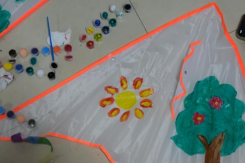 随后,活动进入最令人期待的风筝绘画环节。孩子们手握空白风筝与彩绘工具,在“回声”工作坊师生指导下展开创作。有的以青绿山水描摹春日胜景,有的用卡通图案演绎童真想象,有的将自己的心愿一笔一划写在风筝翅膀上。工作坊成员与社区工作人员穿梭其间,从构图技巧到色彩搭配悉心指导,鼓励孩子们突破框架、大胆创新。一只只独一无二的风筝逐渐成型,活动现场洋溢着欢声笑语,非遗技艺通过童趣笔触完成了一次跨越时空的对话。