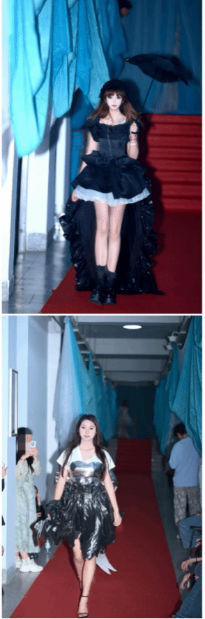活动当天,策划组各司其职,以红毯与蓝白相间的纱幔精心布场。模特身着设计服装惊艳登场,观众席随即爆发出如潮水般的掌声。光影交错间,这场将“垃圾”蜕变为珍宝的视觉盛宴,重新诠释了时尚的生命力。