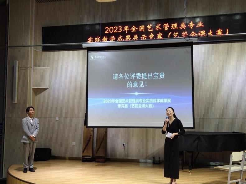 本次年会的全国艺术管理类专业实践教学成果展示竞赛(金课大赛)环节王冬冬老师带领公司员工袁宏伟、于子桉进行了《演艺策划与管理》的课程项目展示,受到与会专家的一致好评